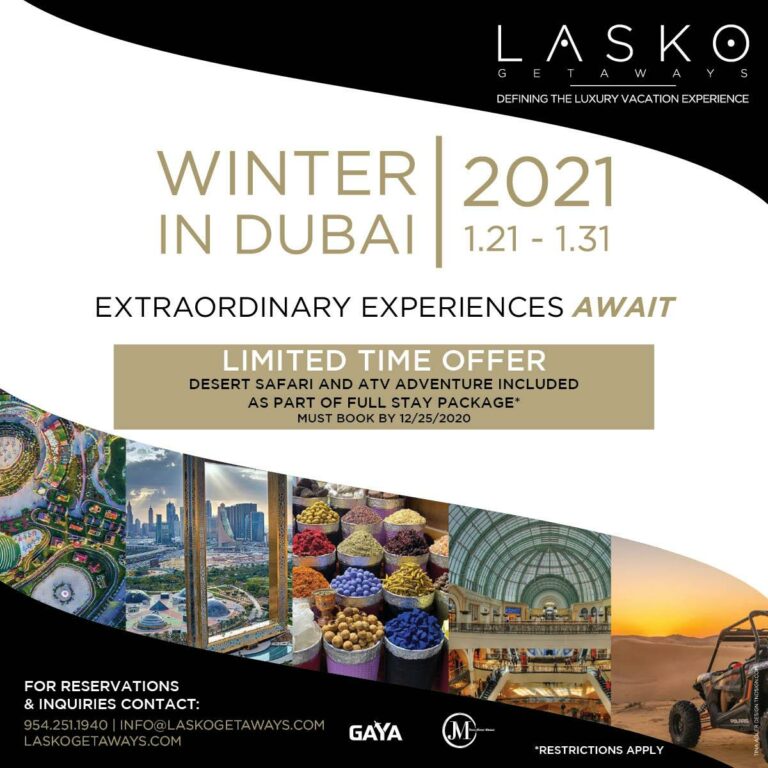 Lasko Getaways, a leader in luxury kosher vacation experiences, is offering an unforgettable winter vacation from January 21st through the 31st at the Five Star Park Hyatt Dubai located at
