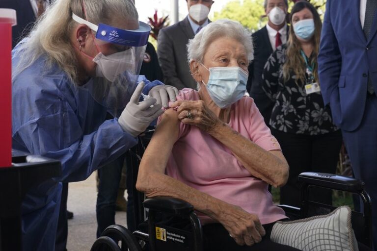 The first COVID-19 vaccinations are underway at U.S. nursing homes, where the virus has killed more than 110,000 people, even as the nation struggles to contain a surge so alarming