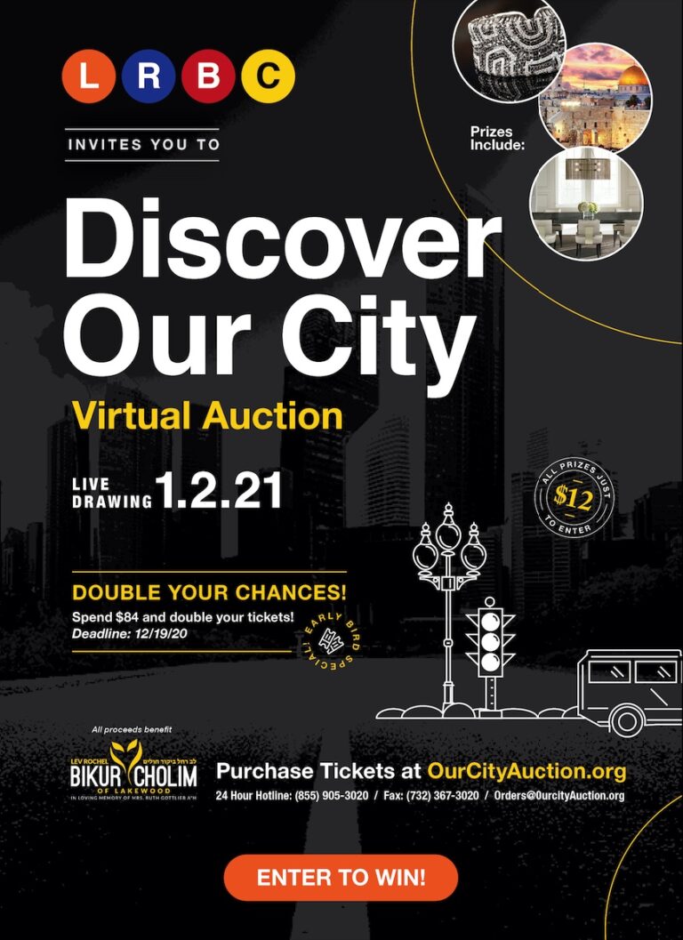 Lev Rochel Bikur Cholim’s Discover Our City virtual auction is here! Get to know our city like never before. FOR A LIMITED TIME: Spend $84 or