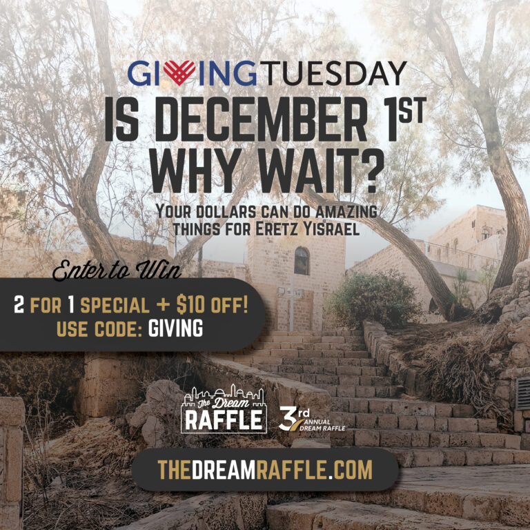 Why wait? Your dollars can do amazing things for Eretz Yisrael! You can change lives with your generosity and win a $1,000,000 apartment in Yerushalayim. Am Yisrael Chai Fund is