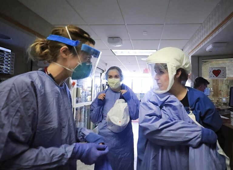 Overwhelmed hospitals are converting chapels, cafeterias, waiting rooms, hallways, even a parking garage into patient treatment areas. Staff members are desperately calling around to other medical centers in search of