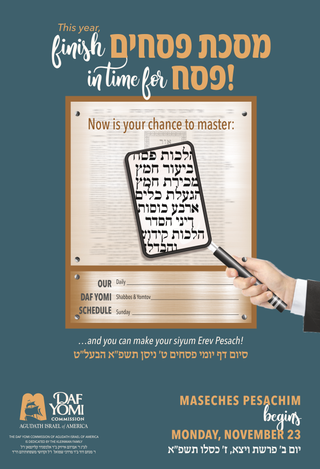 Agudas Yisroel’s Daf Yomi Commission takes this opportunity to wish lomdei Daf Yomi from across the globe a hearty mazel tov upon the completion of Maseches Eruvin! For those not