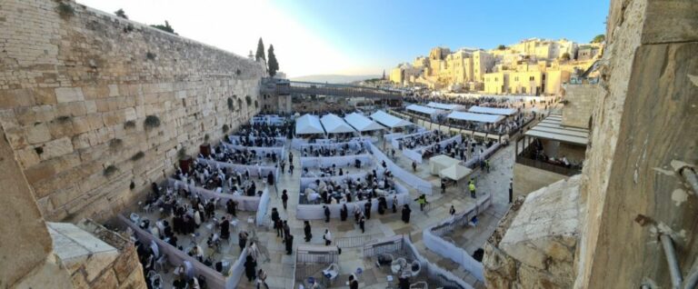 About 2,000 mispallelim davened at the Kosel on Tuesday morning for Rosh Chodesh Kislev. However, unfortunately, the tefillah was disturbed by a small group of about ten women of the
