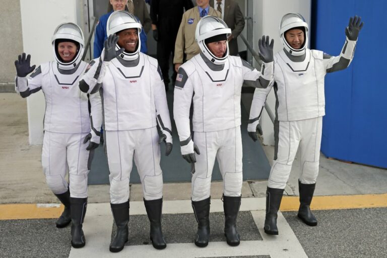 SpaceX’s newly launched capsule with four astronauts arrived Monday at the International Space Station, their new home until spring. The Dragon capsule pulled up and docked late Monday night, following