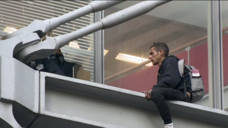 A man took to the side of The New York Times headquarters on Thursday, climbing several stories before police got him inside and into custody. The New York Police Department