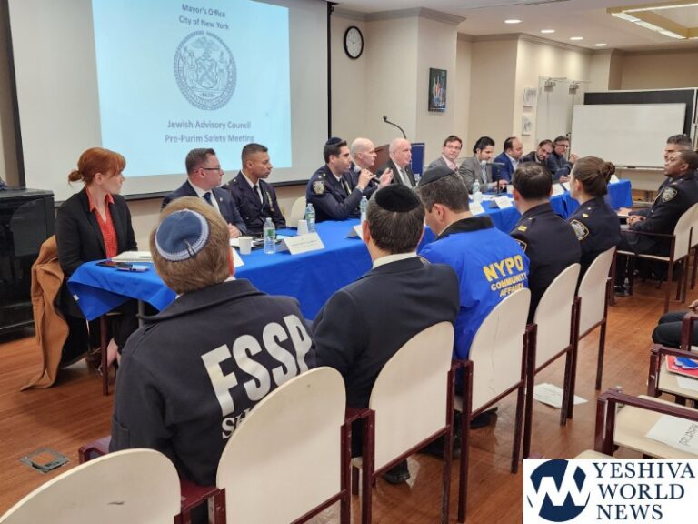 The Mayor’s Jewish Advisory Council organized a community-wide pre-Purim safety meeting that was held at Touro College in Flatbush on Monday. This event featured presentations from NYPD officials and other