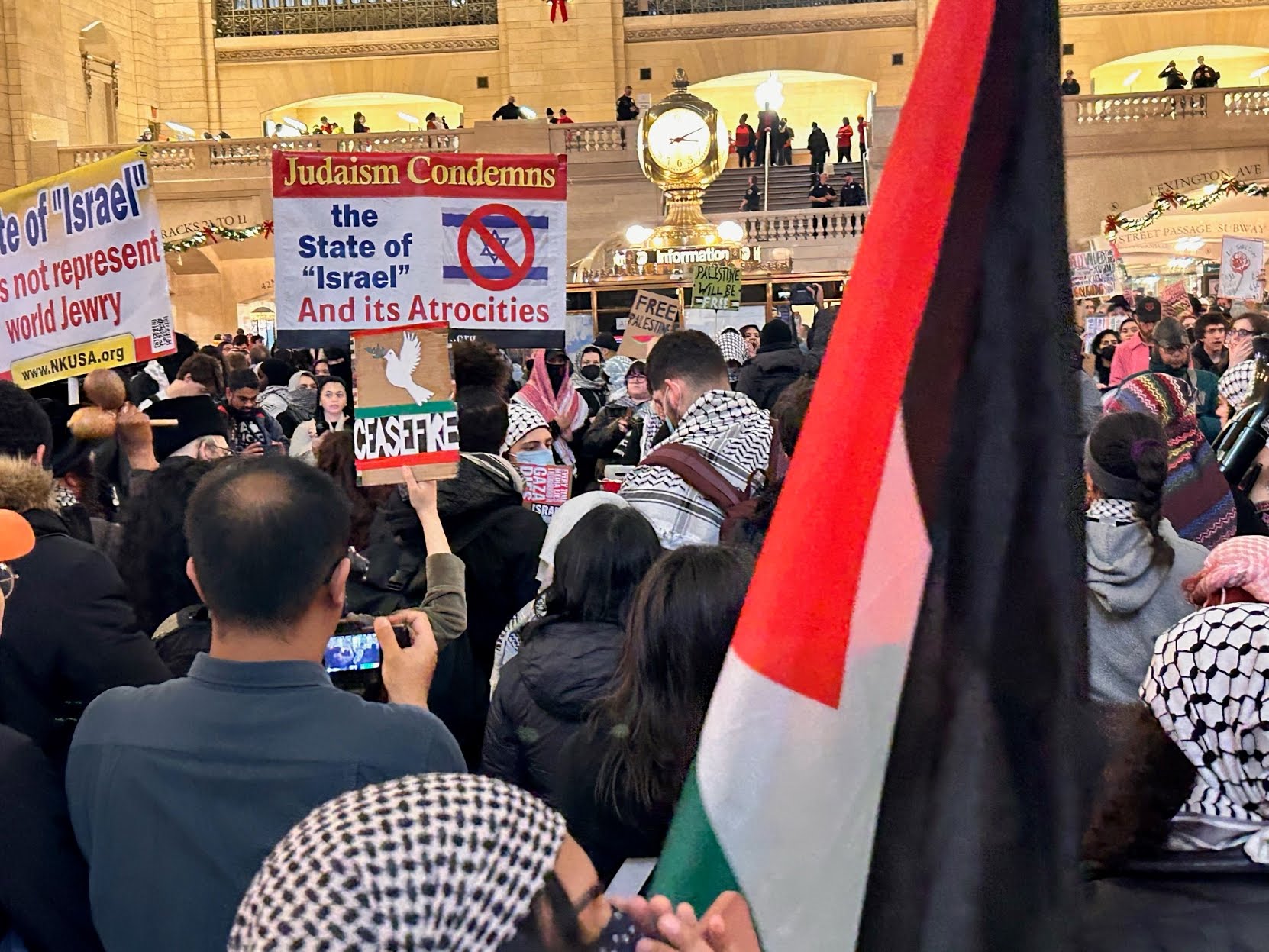 On Monday evening, a pro-Palestinian demonstration assembled within Penn Station’s Moynihan Train Hall in midtown Manhattan. This group had initially congregated at the Port Authority Bus Terminal and had previously