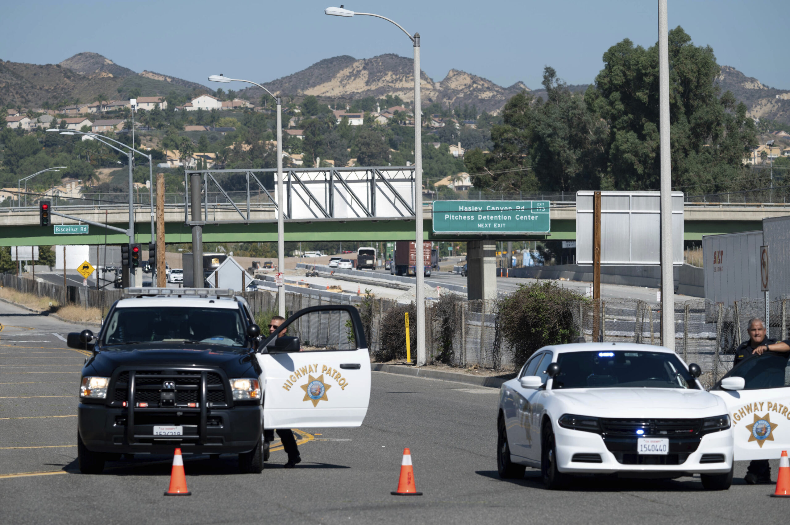 Two veteran Los Angeles County sheriff’s deputies were seriously hurt Tuesday when a fire broke out inside a trailer serving as a mobile shooting range north of Los Angeles, authorities