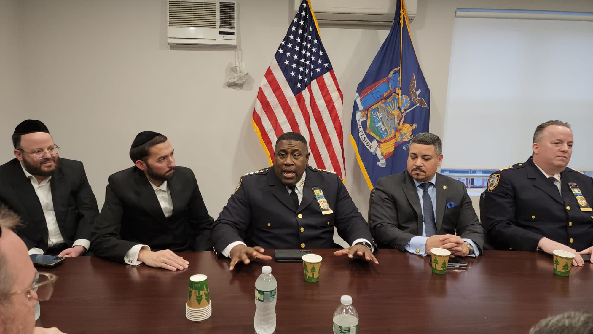The Mayor’s Office, NYPD Top Brass, elected officials, Hatzolah, Shomrim and community leaders met at Assemblyman Simcha Eichenstein’s Office on Thursday and walked the streets of Boro Park to assure