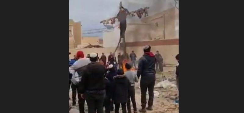 Jews from the Jewish kehilla in Djerba, Tunisia on Monday, Taanis Esther, carried out its minhag of hanging an effigy of Haman and his ten sons from a tree and