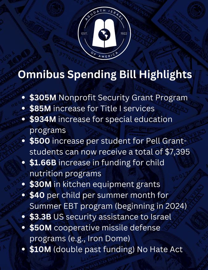 Agudath Israel of America is welcoming the inclusion of security funding and other community priorities in the $1.7 trillion omnibus bill signed last week by President Biden. The bill included