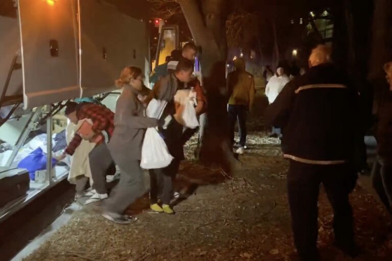 Three buses of recent migrant families arrived from Texas near the home of Vice President Kamala Harris in record-setting cold on Saturday night. Texas authorities have not confirmed their involvement,