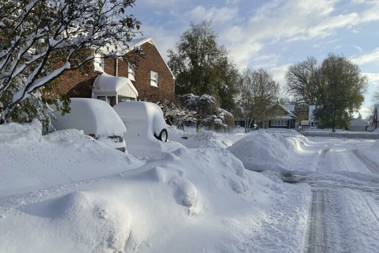 A massive storm dumped several feet of snow in the areas ringing Lake Erie and Lake Ontario, causing at least three deaths, forcing an NFL game to be moved and