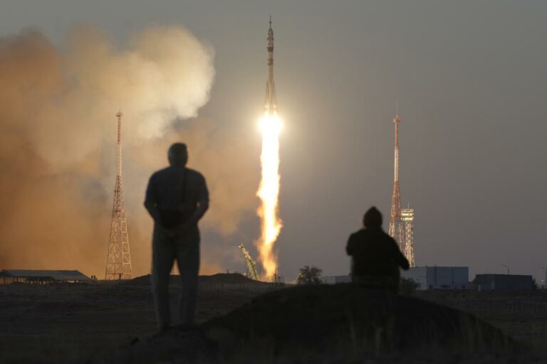 The International Space Station welcomed three new residents Wednesday following a smooth Russian launch. The Soyuz capsule rocketed into orbit from Kazakhstan and, just three hours later, pulled up at