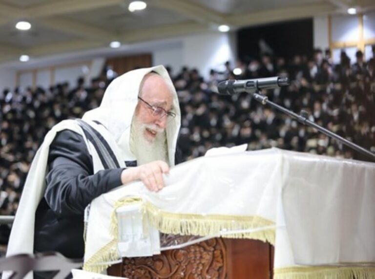 Thousands of Sanzer chassidim throughout Israel gathered in Kiryat Sanz, Netanya early Sunday morning for the first Selichos with the Sanzer Rebbe. As is customary in Sanz, the Rebbe spoke