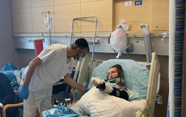 Hadassah Har HaTzofim Hospital on Motzei Shabbos published a video and photos of Baruch Bendit Glick, who was flown back to the US last week together with his father, who