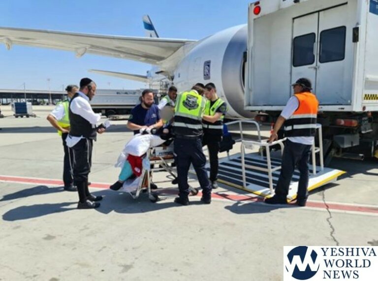 Reb Yoshua Hersh Glick, who was critically wounded in the Jerusalem terror attack a week and a half ago, flew back to New York on Monday, together with his son