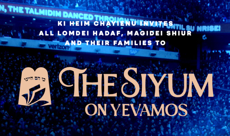 Ki Heim Chayinu Invites all Lomdei Hadaf, Magidei Shiur and their families to a grand celebration of: The Siyum on Yevamos TONIGHT! July 7, 2022 at 8:00 pm Mazel Tov!