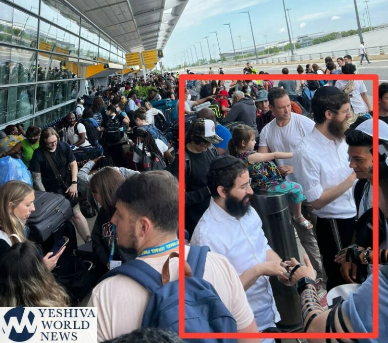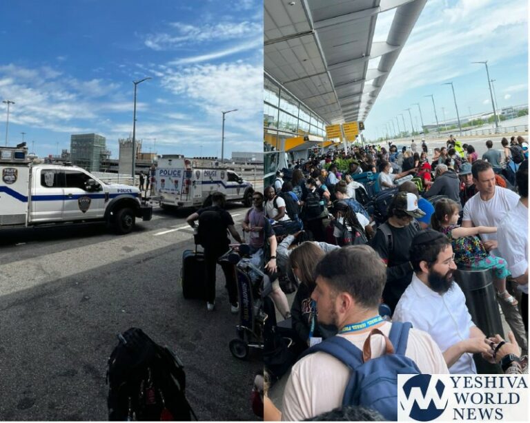 As hundreds of passengers at JFK’s Terminal 4 dealt with fear and chaos on Sunday morning due to an unspecified security threat, a group of Lubavitcher bochurim saw an opportunity