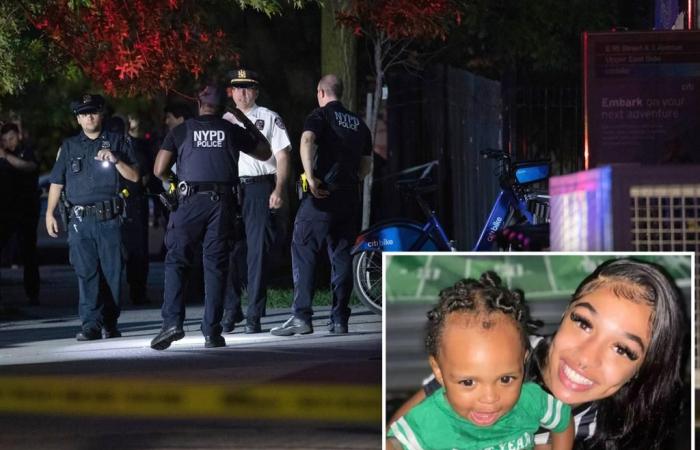 The ex-boyfriend of a New York City woman shot dead Wednesday as she pushed their infant daughter in a stroller has been arrested and charged with killing her, police said