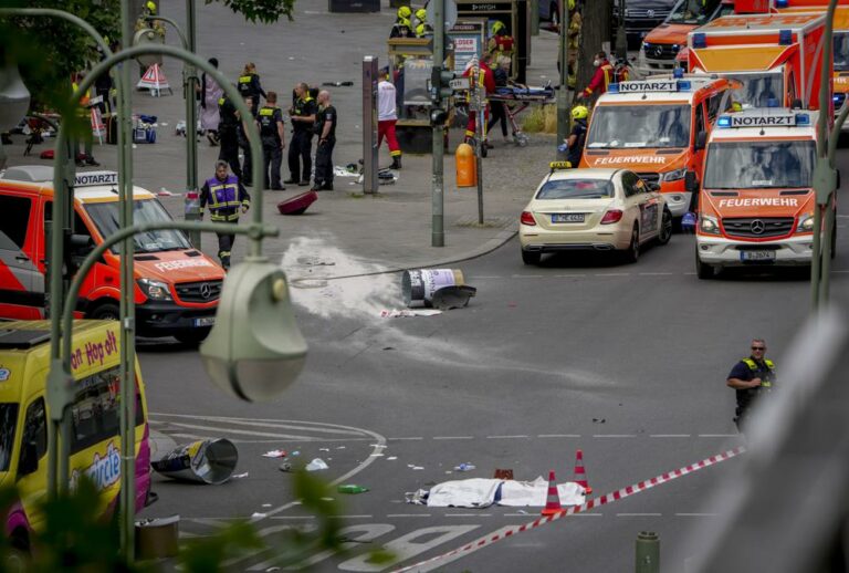 A man drove a car into pedestrians in a popular Berlin shopping district on Wednesday, killing at at least one person and injuring at least eight others, rescue services said.