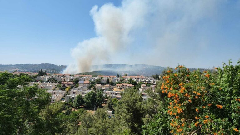 A fire broke out on Wednesday afternoon in the wadi between Mevaseret Tzion, Beit Nekofa and Har Adar in the Jerusalem hills. The residents of one of the streets in