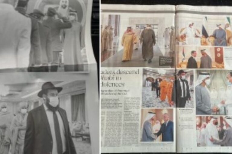 The United Arab Emirates’ two major newspapers on Monday morning published photos of Emirati Rav Rabbi Levi Duchman standing in line to express his consolations to Sheikh Mohammed bin Zayed