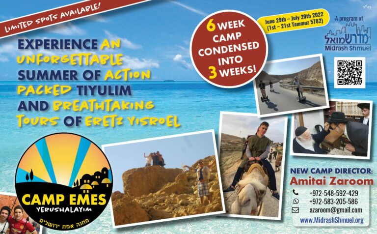 As an added surprise, for the 1st time, Camp Emes is condensing its usual 6 week program into 3 weeks (1st half of summer), cutting out the ‘fluff’ and focusing