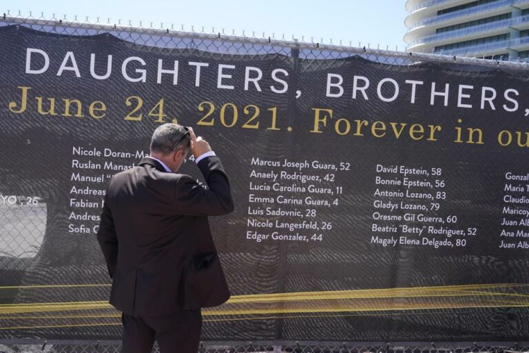 Gathered at a ceremony Thursday to honor the 98 people who died in a Florida condominium collapse last summer, some of the victims’ family members said they are too deep