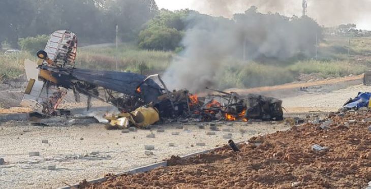 An Israeli pilot of a crop duster plane miraculously survived after his aircraft crashed to the ground and went up in flames. The accident occurred early Wednesday morning in an