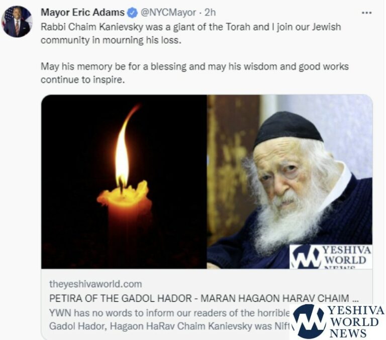 Israeli political and other leaders including NYC Mayor Eric Adams pay tribute to the passing of the Gadol Hador אני דואב עמוקות עם כל בית ישראל על פטירתו של ענק