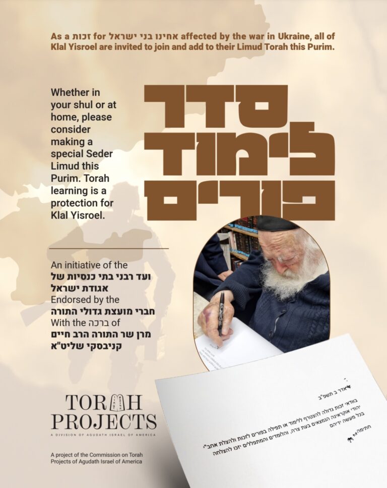 The Torah Projects Commission of Agudas Yisroel sent this out yesterday to Rabbonim across the country. In response to the war in Ukraine, they pointed out that Chazal teach us