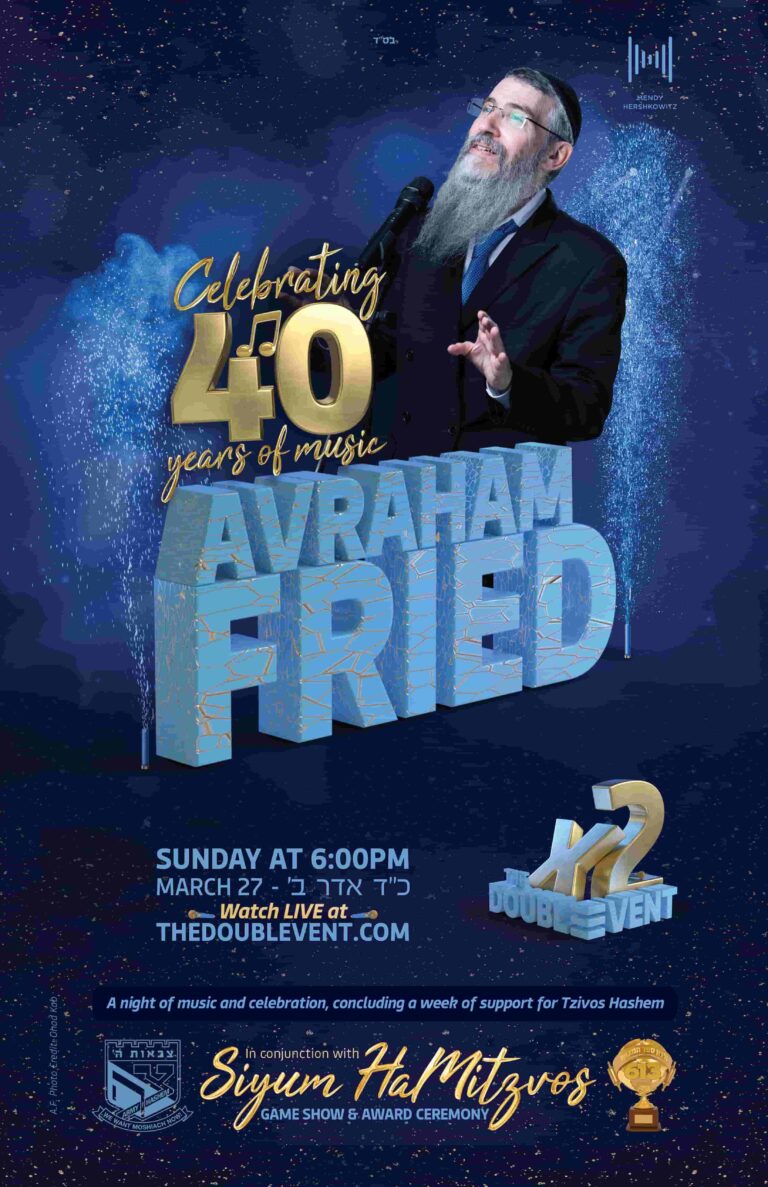B”H Mystery no more. The Double Event revealed!!! Event #1: Sunday, 24 Adar 2 | March 27 – 40 years of Avraham Fried & 40 Years of Tzivos Hashem Event