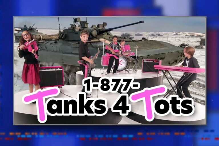 Late-night comedian Stephen Colbert joked about Ukrainian civilians taking control of Russian military vehicles, saying it’s a “great opportunity” to open a new organization – Tanks4Tots, a riff on Oorah’s