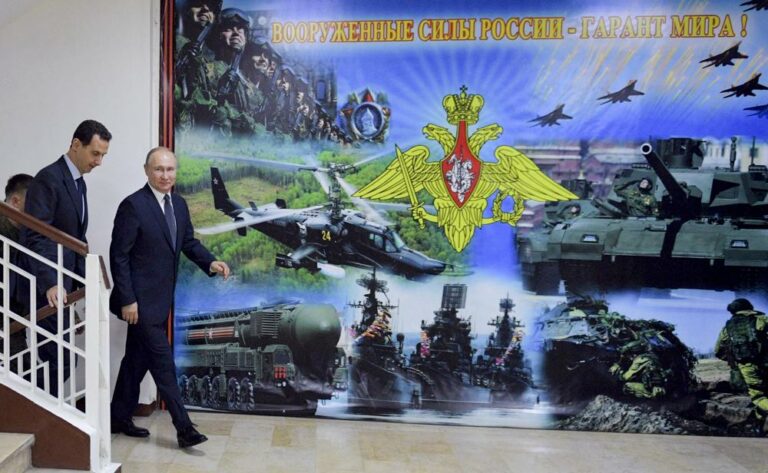 In a neighborhood of Iraq’s capital, a gigantic poster of Vladimir Putin with the words, “We support Russia,” was up for few hours before a security force arrived and hurriedly