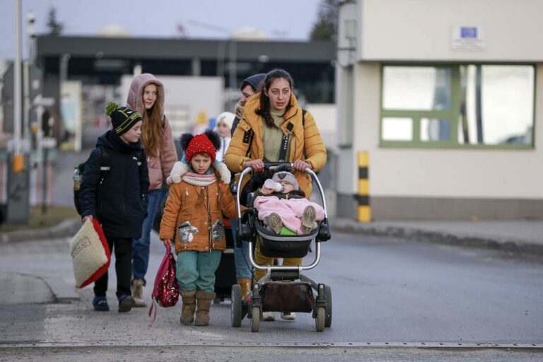 Dragging suitcases and carrying children, tens of thousands of Ukrainians rushed to the borders Saturday as invading Russian troops pressed on with their march toward Ukraine’s capital of Kyiv. At