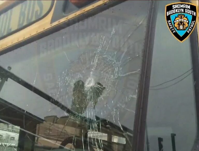 A suspect vandalized a school bus carrying Jewish children in Boro Park on Sunday. Video footage of the incident shows the bus making a left turn at 14th Ave. and