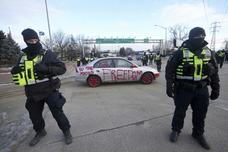 A tense standoff at a U.S.-Canadian border crossing crucial to both countries’ economies appeared to be dissolving peacefully Saturday as Canadian police moved in to disperse the nearly weeklong blockade