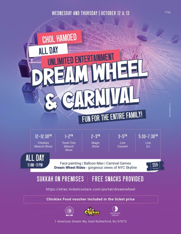 MARK YOUR CALENDAR: Chol Hamoed ALL day UNLIMITED entertainment at American Dream!! 😋 Delicious Kosher food from Chickies with a Sukkah on premises! 🪄 Epic Magic show! 🎶 Concert