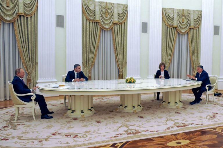 Russian President Vladimir Putin discussed tensions over Ukraine with his visiting Hungarian counterpart on Tuesday, a day after Russian and U.S. diplomats exchanged sharp accusations at the U.N. Security Council.