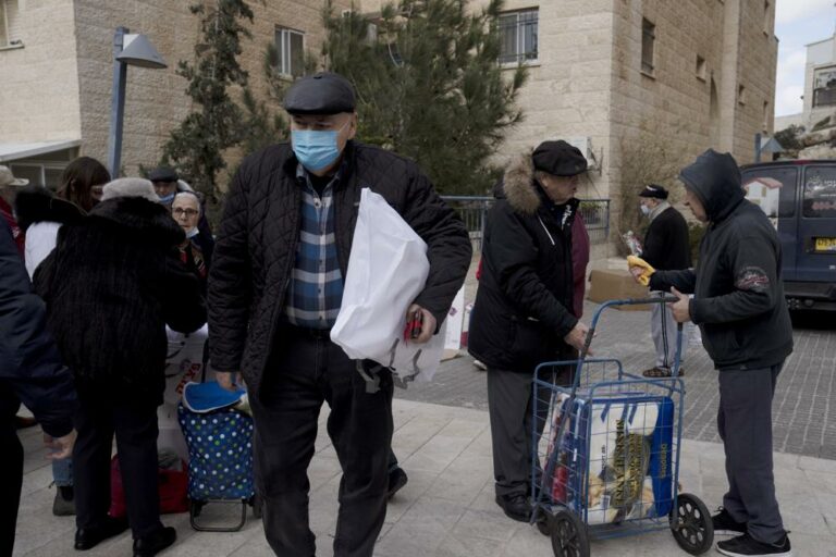 Several dozen octogenarians, bundled against the cold, chattered in Russian and Hebrew as they picked through heaps of carrots, onions and grapefruit in a Jerusalem courtyard. Nearly all of them