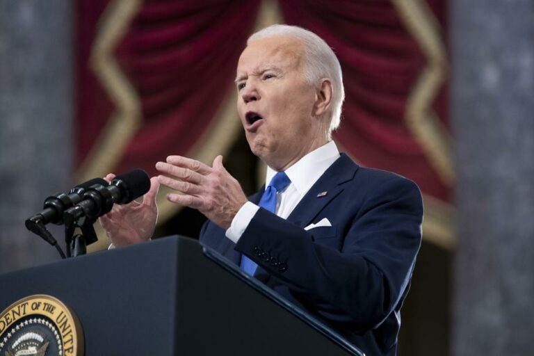 President Joe Biden on Thursday forcefully condemned Donald Trump’s election “big lie” that sparked the deadly breach of the Capitol by his supporters and continues to motivate deep national division.