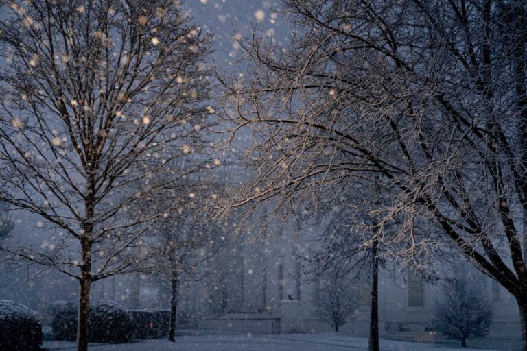 A winter storm packing heavy snow blew into the nation’s capital on Monday, closing government offices and schools and grounding the president’s helicopter. As much as 10 inches (25 centimeters)