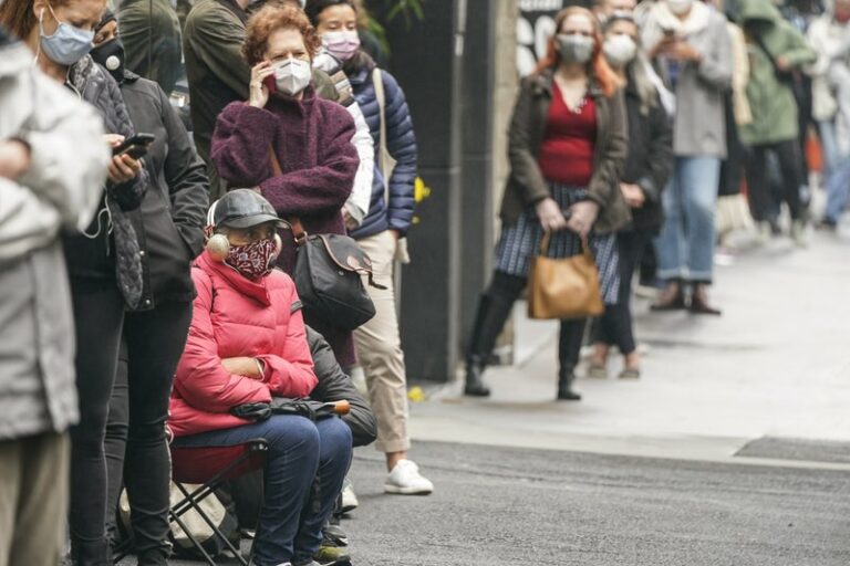 New Yorkers lined up to vote early for a third consecutive day Monday, many waiting under umbrellas, after a weekend that saw a crush of more than 400,000 voters statewide.