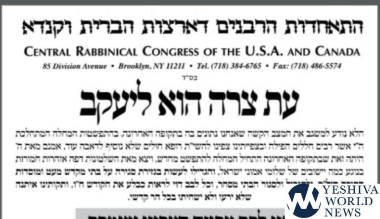 The Hisachudus HaRabbanim (CRC), originally founded by the Satmar Rov (Divrei Yoel) ZATZAL, published a pubic announcement on Thursday condemning the recent protests in Boro Park in the strongest terms