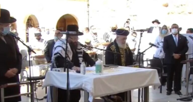 Following the Birchas Kohanim ceremony at the Kosel on Monday morning with the participation of only 20 people, the Kosel Rav, Reb Shmuel Rabinowitz, recited a Mi Shebeirach for the
