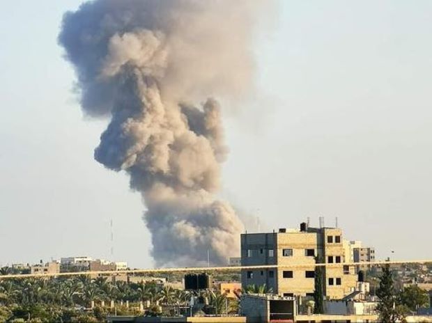 An Israeli aircraft struck what the army said was a Hamas military target in the southern Gaza Strip late Monday, shortly after Gaza militants fired a rocket into Israel. The
