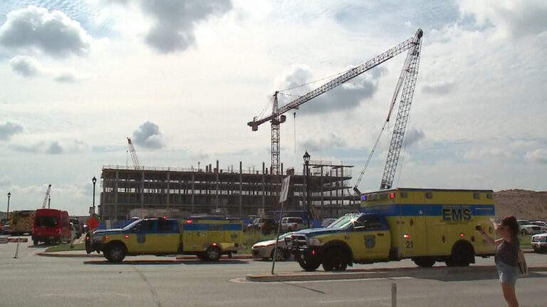 Two cranes collided Wednesday at a construction site in Austin, Texas, causing one of them to partially collapse and injuring at least 22 workers who were sent scrambling for safety,