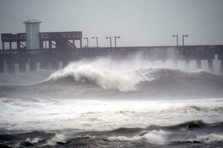 Heavy rain and pounding surf driven by Hurricane Sally hit the Florida and Alabama coasts Tuesday as forecasters expected the slow-moving storm to dump continuous deluges before and after landfall,