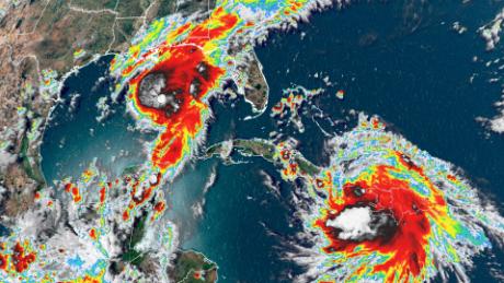 Oil and gas production in the Gulf of Mexico was slowed Sunday by the approach of two storms that led companies to remove workers from more than 100 offshore platforms.